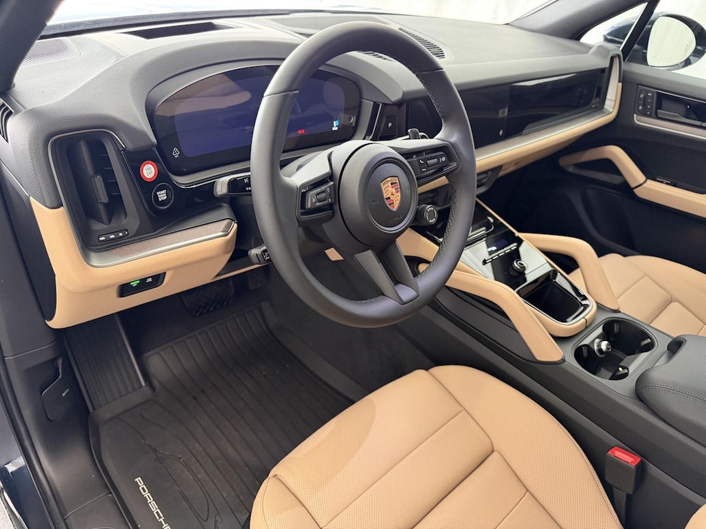 WHEELS: 21 CAYENNE EXCLUSIVE DESIGN, ALGARVE BLUE METALLIC, 14-WAY POWER SEATS W/COMFORT MEMORY, BLACK/MOJAVE BEIGE, EMBOSSED LEATHER SEAT TRIM W/TWO-TONE INTERIOR, PREMIUM PACKAGE PLUS, TRAILER HITCH W/O TOW BALL, MODEL DESIGNATION ON DOORS IN SILVER, HD-MATRIX DESIGN LED HEADLIGHTS, BOSE SURROUND SOUND SYSTEM, ADAPTIVE CRUISE CONTROL W/LANE KEEP ASSIST (LKA), INTERIOR TRIM IN EUCALYPTUS, UNDER DOOR PUDDLE LIGHT PROJECTORS, ROOF RAILS IN ALUMINUM FINISH, PORSCHE CREST ON FRONT HEADRESTS, HEAD-UP DISPLAY, REAR HEATED SEATS, FRONT VENTILATED SEATS
